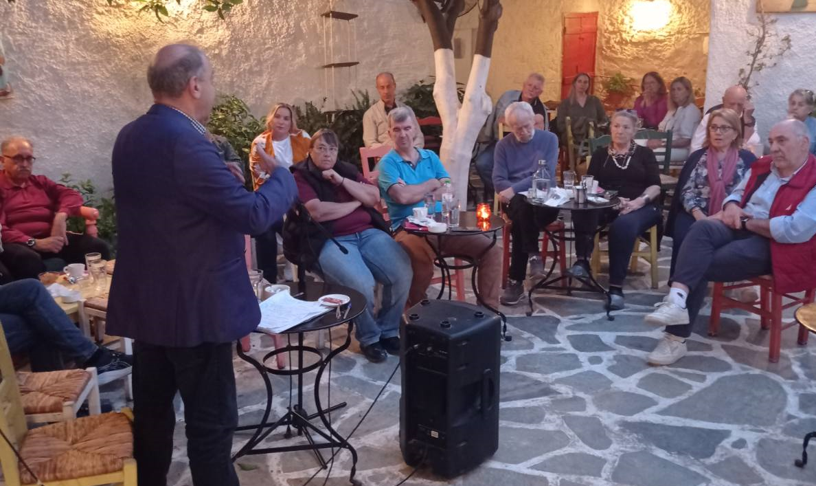 Στη συνέχεια συναντήθηκε με τον Σωτήρη Κρισίλια, πρόεδρο του συλλόγου λατόμων Καρύστου, που παράγουν την περίφημη πέτρα Καρύστου και εξάγουν το 80% της παραγωγής τους στο εξωτερικό, ο οποίος των ενημέρωσε ότι προβλέπονται στίγματα ανεμογεννητριών μέσα στους λατομικούς χώρους, που βάζουν σε διακινδύνευση την δραστηριότητά τους και εκατοντάδες υφιστάμενες θέσεις εργασίας.