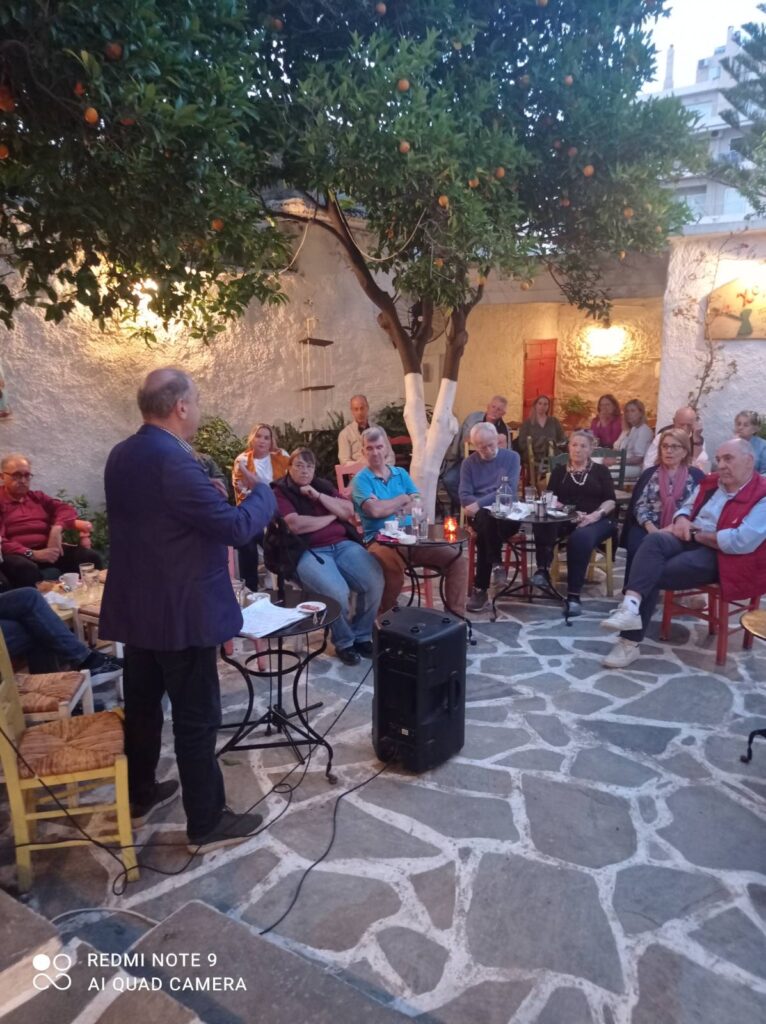 Στη συνέχεια συναντήθηκε με τον Σωτήρη Κρισίλια, πρόεδρο του συλλόγου λατόμων Καρύστου, που παράγουν την περίφημη πέτρα Καρύστου και εξάγουν το 80% της παραγωγής τους στο εξωτερικό, ο οποίος των ενημέρωσε ότι προβλέπονται στίγματα ανεμογεννητριών μέσα στους λατομικούς χώρους, που βάζουν σε διακινδύνευση την δραστηριότητά τους και εκατοντάδες υφιστάμενες θέσεις εργασίας.