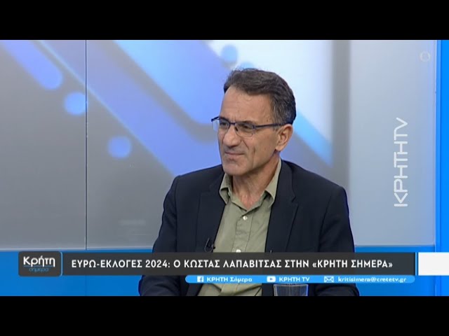 Ο υποψήφιος ευρωβουλευτής της ενωτικής πρωτοβουλίας ΜέΡΑ25 Ι Ανατρεπτική Οικολογική Αριστερά, Κώστας Λαπαβίτσας, στο ΚΡΗΤΗ TV με την Μαίρη Καριωτάκη και τον Μπάμπη Σαββίδη