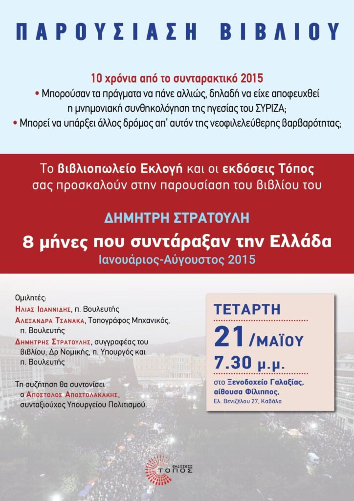 Το βιβλιοπωλείο Εκλογή και οι εκδόσεις Τόπος σας προσκαλούν στην παρουσίαση του βιβλίου του