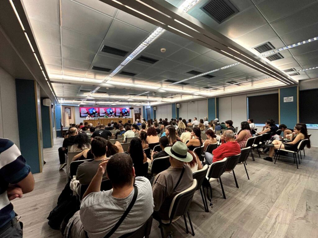 Στην κατάμεστη αίθουσα της ΕΣΗΕΑ, η Μαριάνα Τσίχλη, γραμματέας της ΛΑΕ- ΑΑ, ο Κώστας Ήσυχος, μέλος ΠΓ της ΛΑΕ-ΑΑ, ο Δημήτρης Καλτσώνης, καθηγητής στο Τμήμα Πολιτικών Επιστημών Παντείου και ο Βασίλης Λιόσης, εκπαιδευτικός και συγγραφέας, μίλησαν σε μια πλούσια συζήτηση που συντόνισε ο δημοσιογράφος Γ. Κυμπουρόπουλος για τη «μαύρη διεθνή» με αφορμή το ειδικό ένθετο της ΕφΣυν στις 25 Μάη.