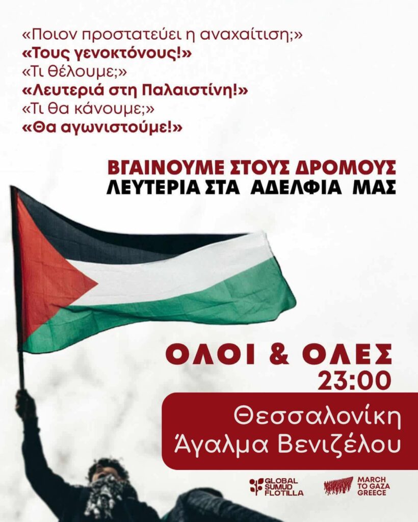 Αναδημοσιεύουμε Έκτακτη Ανακοίνωση του March to Gaza Greece. Όλοι και Όλες στους δρόμους!!