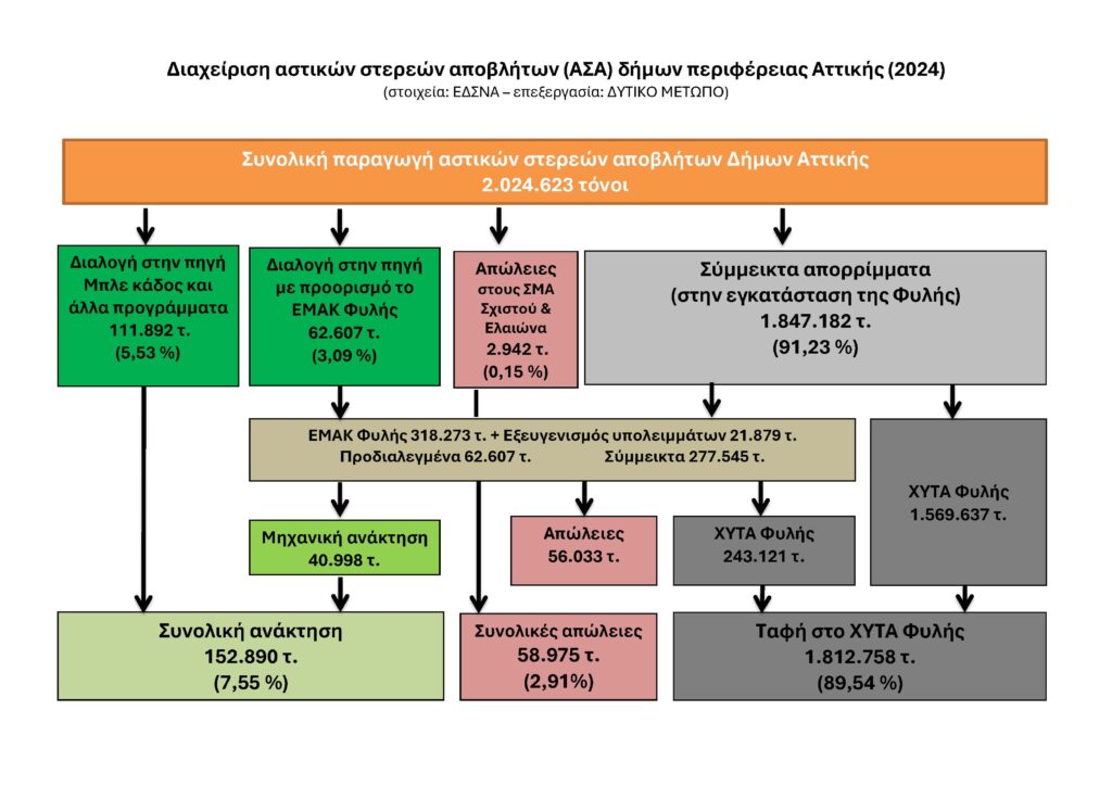 Το ΔΥΤΙΚΟ ΜΕΤΩΠΟ σχολιάζει τα αποτελέσματα της διαχείρισης των αστικών στερεών αποβλήτων (ΑΣΑ) των δήμων της περιφέρειας Αττικής, για το 2024