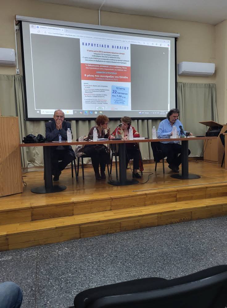 Για το βιβλίο μίλησαν οι Δέσποινα Σπανού, Νομικός, πρωην Αντιπρόεδρος της ΑΔΕΔΥ, Σταύρος Χρυσαδάκος, Γεωπόνος – Περιβαλλοντολόγος, πρωην μέλος Περιφερειακού Συμβουλίου Πελοποννήσου και ο συγγραφέας του Δημήτρης Στρατούλης.