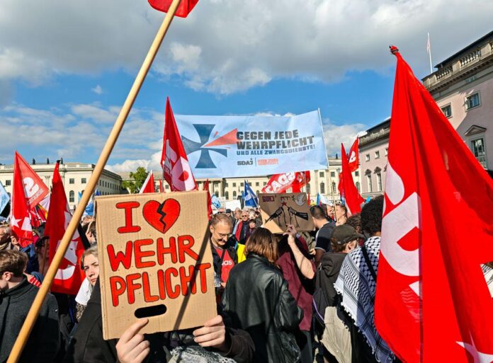 Η συζήτηση για την επαναφορά της υποχρεωτικής στρατιωτικής θητείας στη Γερμανία πυροδοτεί ένα κύμα αντιδράσεων της νεολαίας σε όλη τη χώρα. Μαθητές και νέοι οργανώνονται πανεθνικά, εκφράζοντας την αντίθεσή τους στον «νέο νόμο περί στρατιωτικής υπηρεσίας», ο οποίος –παρά τις κυβερνητικές διαβεβαιώσεις περί εθελοντικής βάσης– προβλέπει την υποχρεωτική διαδικασία καταγραφής και κατάταξης από το 2026. Η απόφαση της Κυβέρνησης γίνεται στα πλαίσια του επανεξοπλισμού της Γερμανίας και γενικότερα της επαναστρατικοποίησης της Ευρώπης με πρόσχημα τον κίνδυνο από τη Ρωσία.