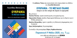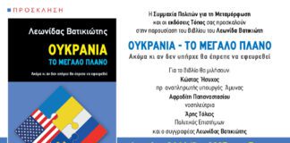 Παρουσίαση του βιβλίου του Λεωνίδα Βατικιώτη “Ουκρανία – Το μεγάλο πλάνο”...